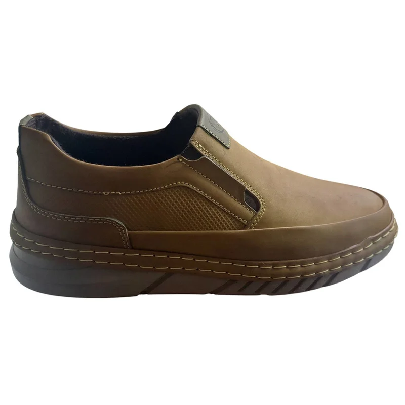 کفش راحتی بدون بند کژوال: [کفش طبی مردانه زیره آجدار] در دو رنگ عسلی و زیتونی