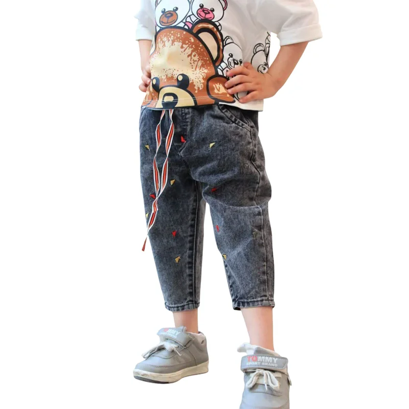 شلوار جین مام استایل بچگانه کمر کشی: پارچه جین تُرک گلدوزی شده با ضمانت مرجوعی