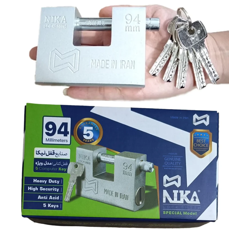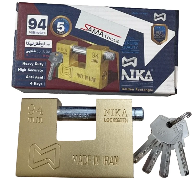 قفل کتابی نیکا ۹۴ میلیمتری: طلایی، ۵ سال ضمانت و امنیت ضد اسید