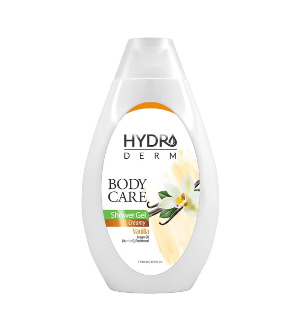 شامپو بدن کرمی هیدرودرم با رایحه وانیل و روغن آرگان حجم 500 میلی لیتر