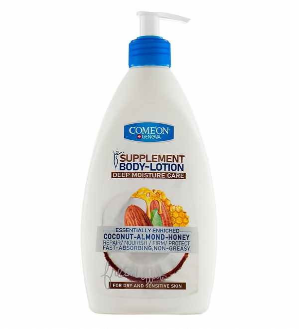لوسیون بدن کامان با رایحه نارگیل بادام و عسل مناسب پوست های خشک و حساس حجم 510 میلی لیتر