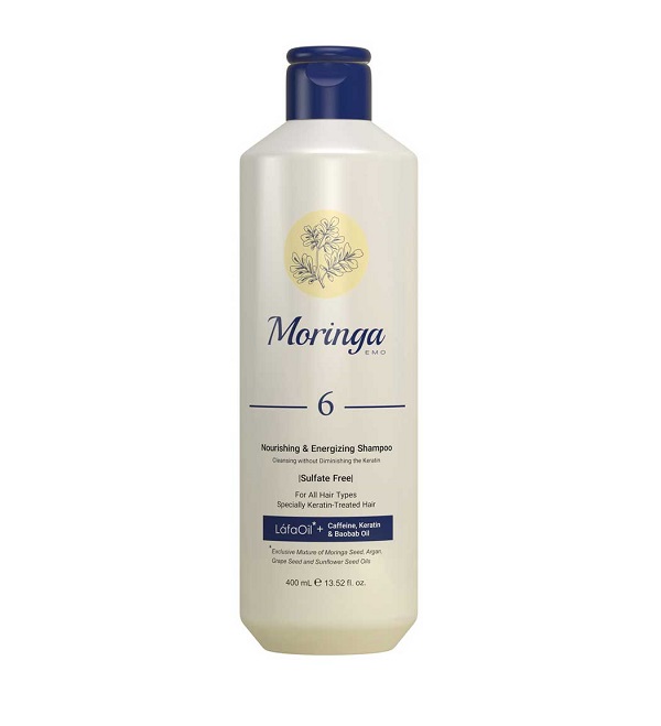 شامپو بدون سولفات مورینگا مناسب انواع مو به ویژه کراتین شده شماره 6 حجم 400 میلی لیتر