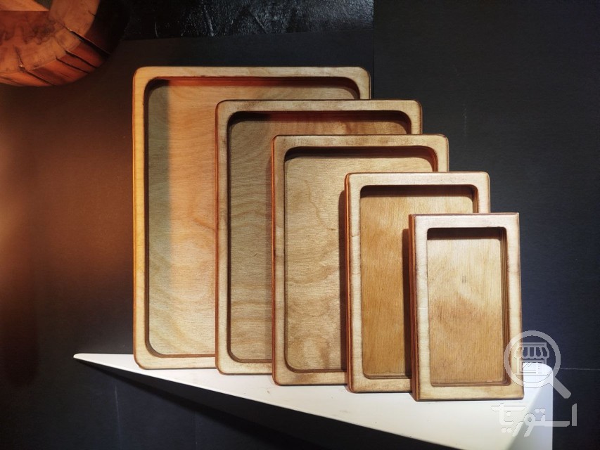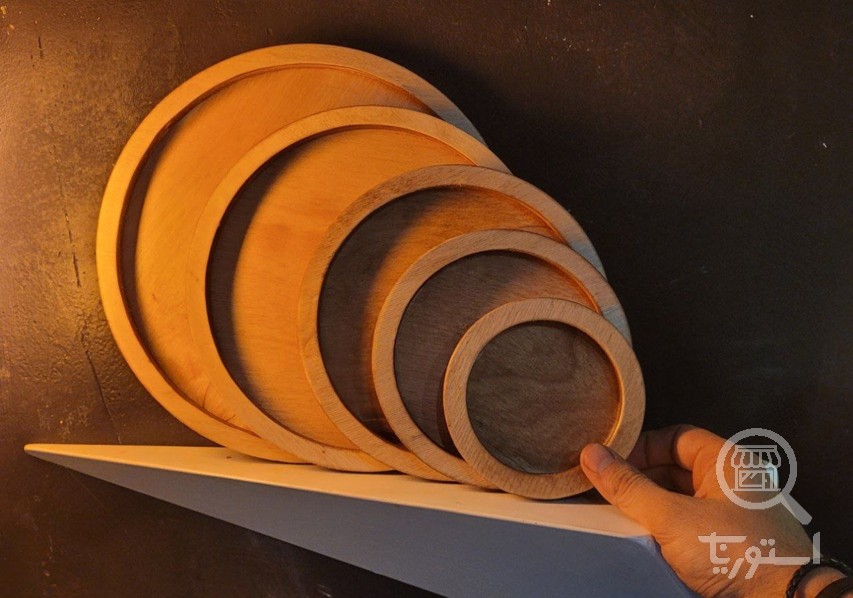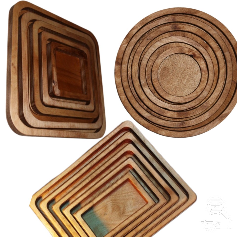 3 مجموعه 5 عددی سینی چوبی دایره مربع مستطیل ( 15 تیکه )