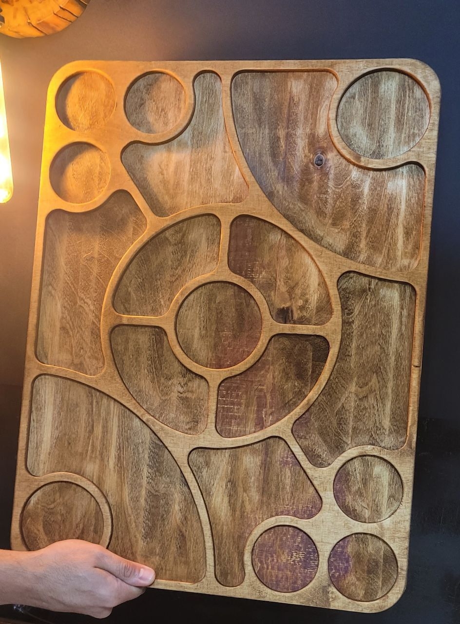 سینی سرو چوبی طرح دایره دسته دار کد 075