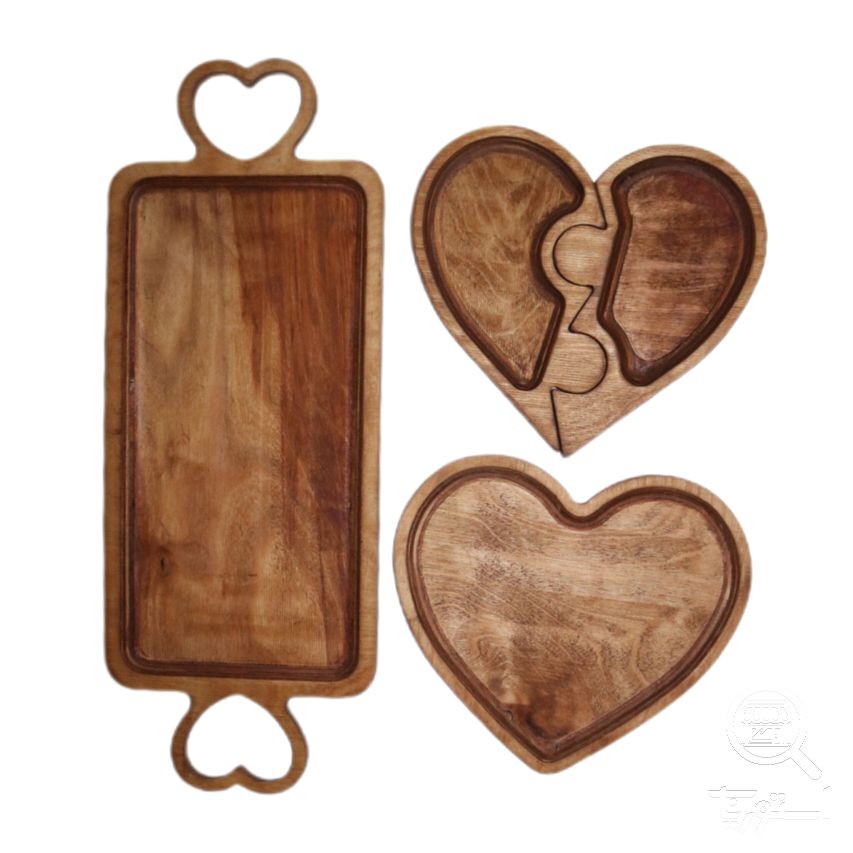 سرویس چوبی اقتصادی 3 عددی سینی و اردوخوری قلبی P22