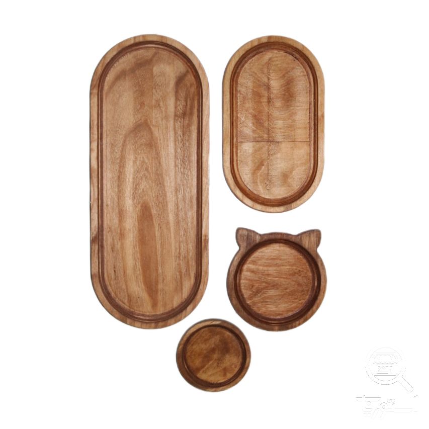 سرویس 4 عددی سینی و اردو خوری و زیرلیوانی چوبی بیضی دایره