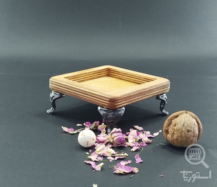 سینی پذیرایی چوبی کوچک پایه دار طرح مربع کد510