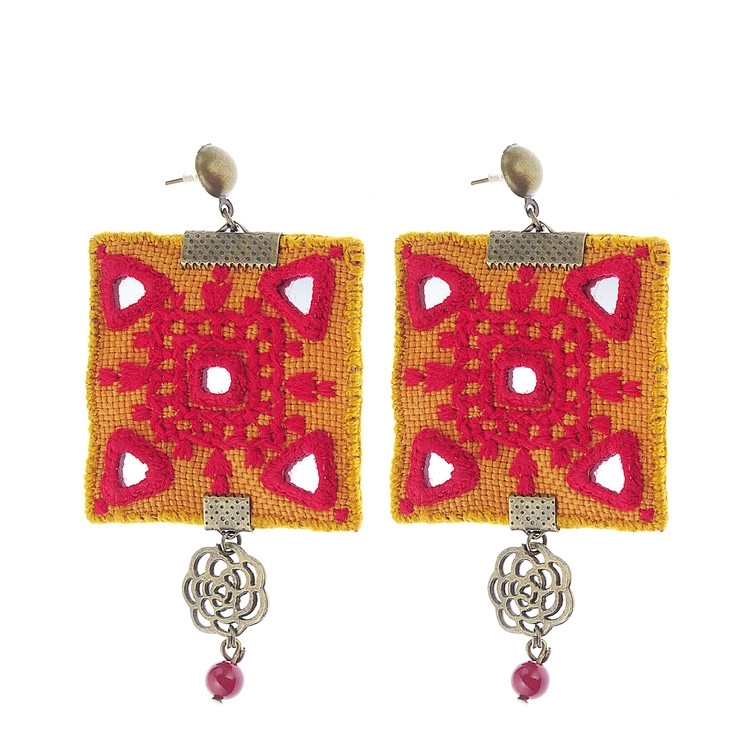 گوشواره زنانه سوزندوزی بلوچی روچ مدل گل