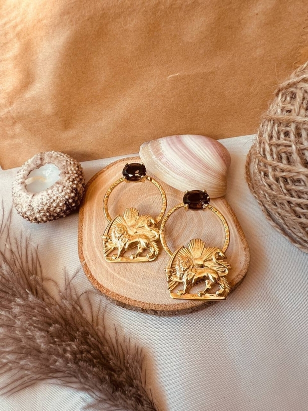 گوشواره زنانه گالری عزیزی مدل شیر و خورشید پهلوی