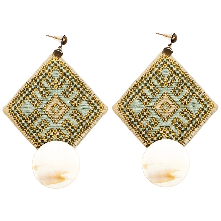 گوشواره زنانه سوزندوزی بلوچی گالری عزیزی مدل صدف