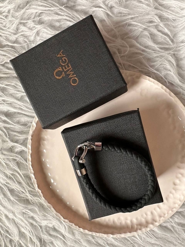 دستبند استیل امگا مدل بلک رابر