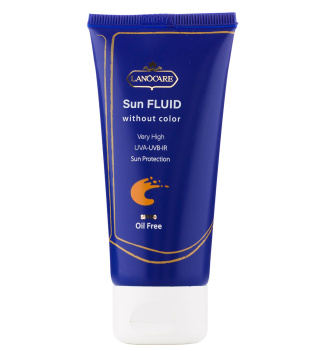فلوئید ضد آفتاب بی رنگ لانوکر با SPF50 مناسب انواع پوست حجم 50 میلی لیتر
